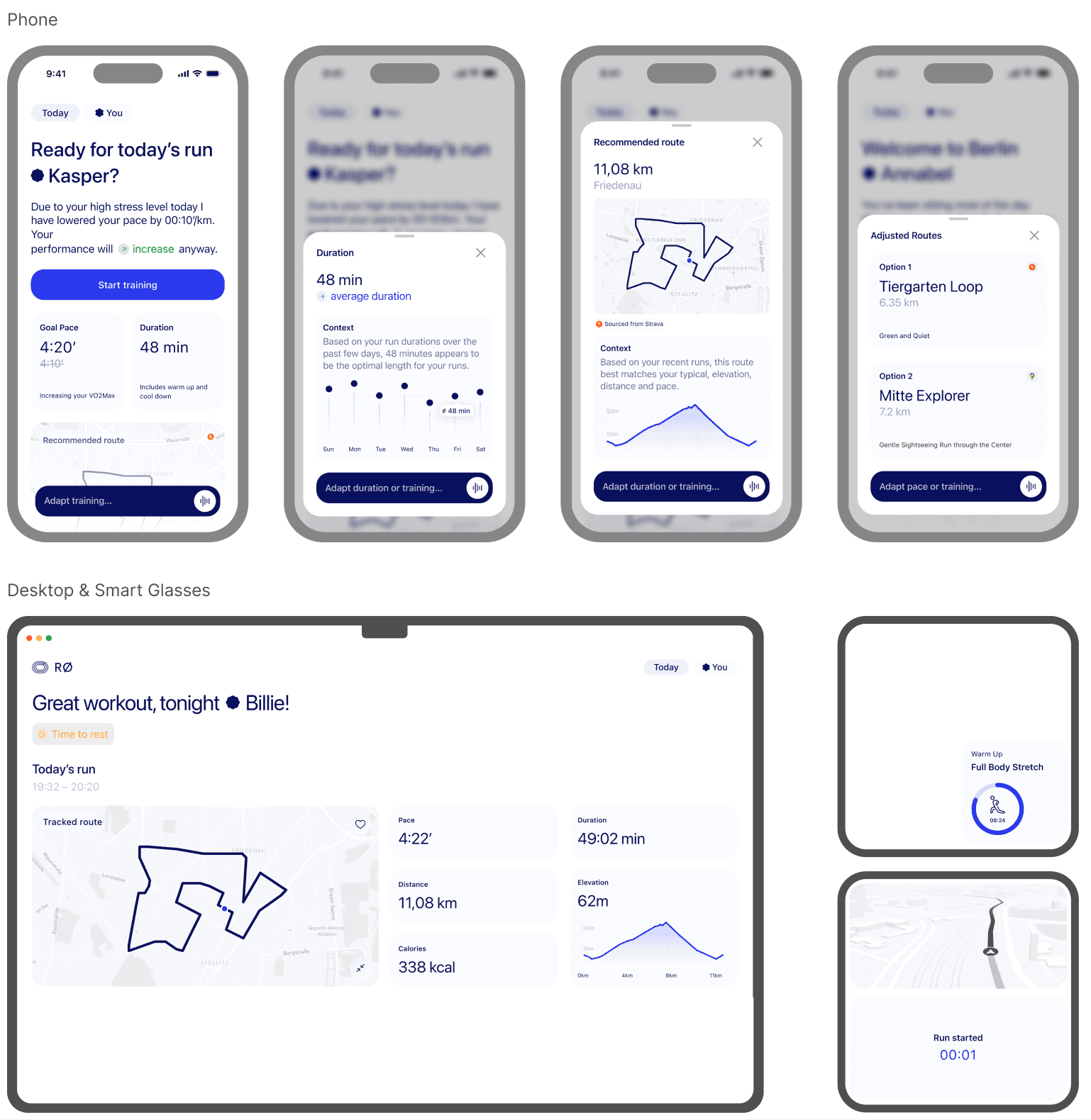 The project treats human-system interaction as a relational ecosystem rather than a linear command structure. Usability emerges from the interaction between the user’s instantaneous state and the system’s adaptive logic. Two runners with the same goal can therefore receive entirely different guidance depending on their situated reality.